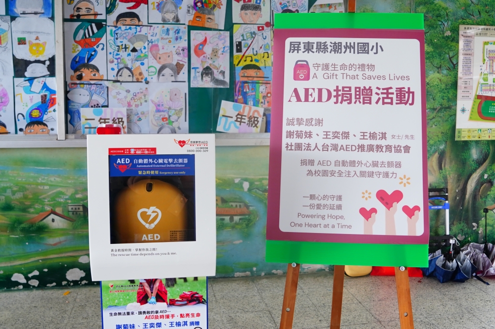 屏東縣潮州鎮 | 潮州國民小學 | 感謝 廖小姐以母親 謝菊妹女士與孩子 王奕傑、王榆淇 名義捐贈AED | 提升校園生命安全