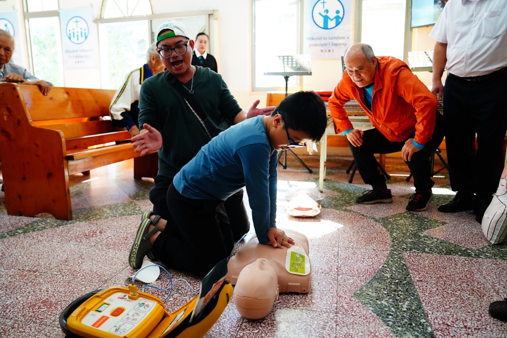 為了讓這份愛發揮最大力量,協會也在現場帶領長者與志工進行 CPR 與 AED 操作訓練。看著長輩們認真學習的神情,我們知道,這份訓練讓守護彼此生命的力量在部落中慢慢扎根。