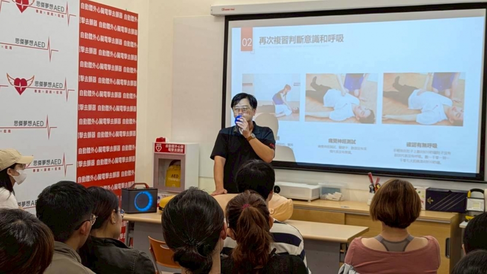 社團法人台灣AED推廣教育協會每月上旬舉辦CPR+AED急救教學訓練,