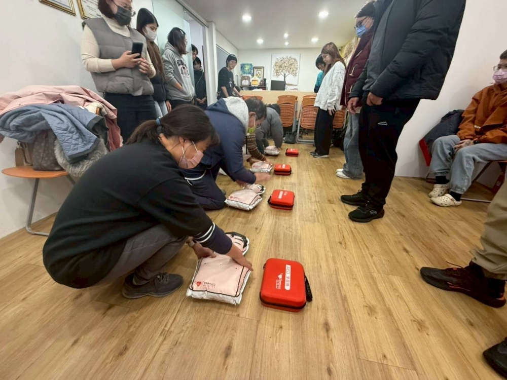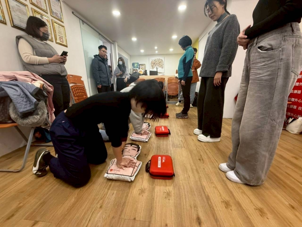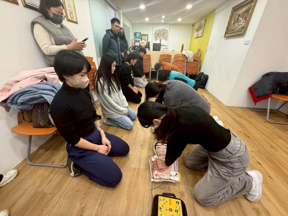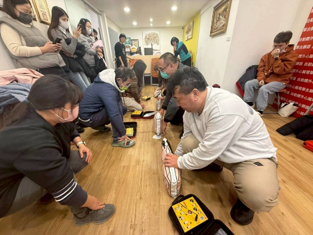 社團法人台灣AED推廣教育協會每月上旬舉辦CPR+AED急救教學訓練,